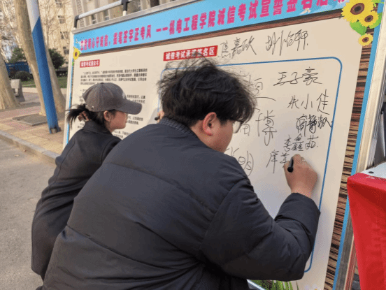 活动于12月29日至31日在天使大道有序开展。12月29日中午12时,活动正式启动,来往学子纷纷驻足参与。现场,同学们或认真研读展板上的诚信考试承诺书,深刻领会诚信应考的内涵;或主动与志愿者、身边同学交流探讨诚信考试的重要意义,分享高效备考技巧与经验;更有不少同学在宣传展板的签名区郑重签下自己的姓名,以笔墨定格承诺,用行动传递“拒绝舞弊、诚信应考”的坚定信念。同学们全程热情高涨、态度严谨,让活动现场洋溢着浓厚的诚信氛围,为此次活动增添了别样光彩。